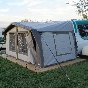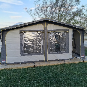1975`den beri kalite ve güvenin adı Her türlü kamp organizasyonlarınız ve kişiye özel ihtiyaçlarınız için yüksek ürün kalitesiyle kolay taşıma, kolay kurulum.. Kendi modelimiz tam entegre karavan çadırı Knidos 270 Karavan Çadırı